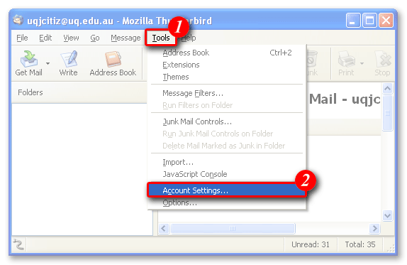 | 19)Click the [OK] button to continue. Thunderbird will download any new messages from your mail account. (All new mail will be displayed in the right pane). |
