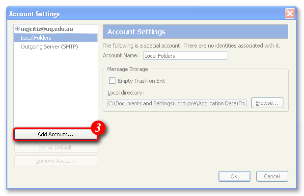 | 14)Thunderbird will automatically enter your email address as the account name. (It is recommended that you leave this 'as is'). |