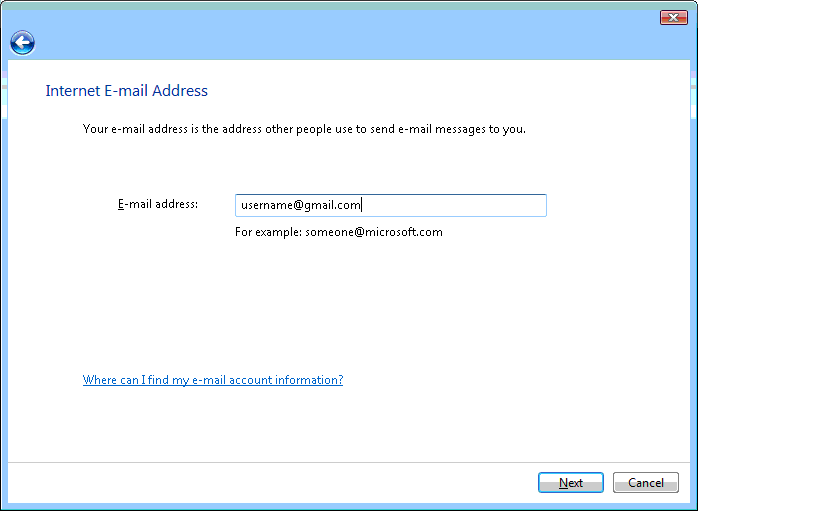 3) Enter your complete e-mail address, and click Next.